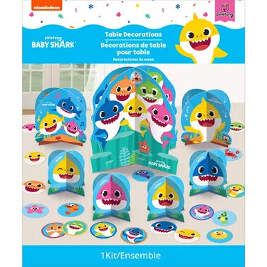 Decorate the tables for your little one's shark-themed birthday party with the Baby Shark Table Decorating Kit! This decorating kit includes cardstock centerpieces featuring Baby Shark, Daddy Shark, Mommy Shark, Grandpa Shark, Grandma Shark, and William from Pinkfong's Baby Shark video. Scatter the round cutouts across the table to complete your little shark's party decorations. Add a festive touch to party tables with the Baby Shark Table Decorating Kit!