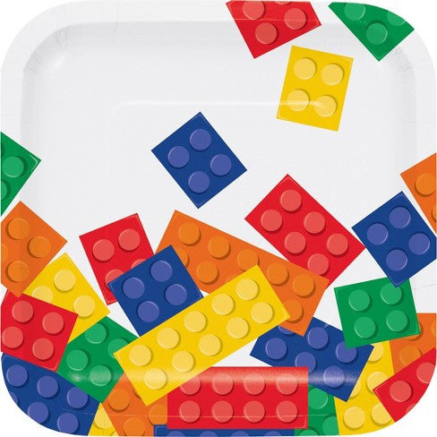 Keep up the festive atmosphere as the birthday party guests take a break for some cake after all the fun activities at the celebration with the Block Party Dessert Plates. These 7" square plates are perfect for yummy snacks and desserts and feature colorful blocks cascading from the top of the plate. Sold in packages of 8, the paper plate pairs tremendously with other Block Party party supplies.