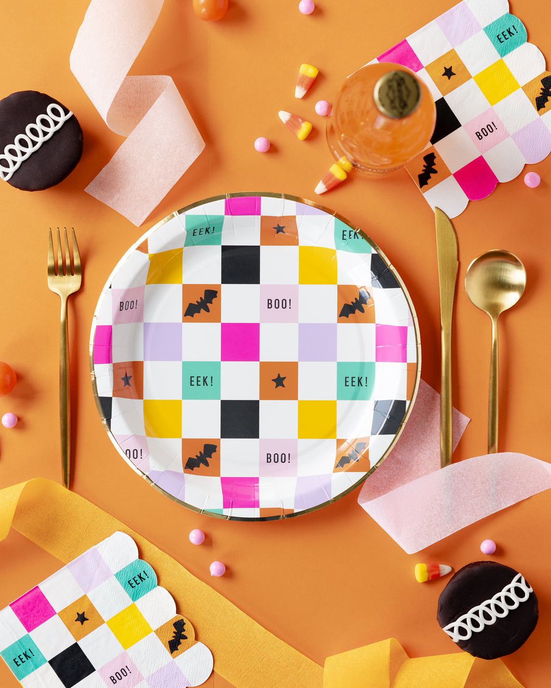 Add a spooktacular touch to your Halloween party with our checkerboard pattern paper plates! Perfect for holding your favorite treats, each plate is adorned with a playful and festive design. Keep the party alive with these must-have plates.