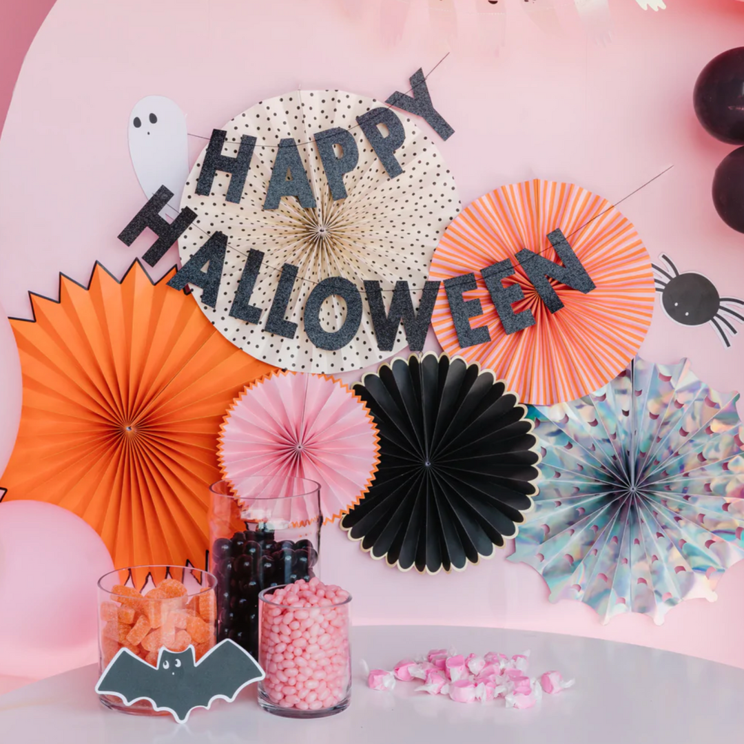 Time to get spooky! This classic favorite word banner is covered with black glitter to give your party some extra sparkle. Decorate your goodie table, or hang on the wall to create a truly spooky backdrop.