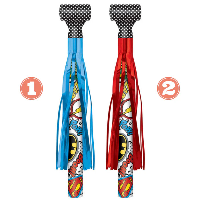 Unleash the power of the Justice League with the Justice League Unite Blowouts 8pk! These action-packed party blowouts feature your favorite superheroes, adding excitement and adventure to any celebration. Perfect for birthdays, themed parties, or fans of the iconic Justice League. Get ready for a blast of fun!