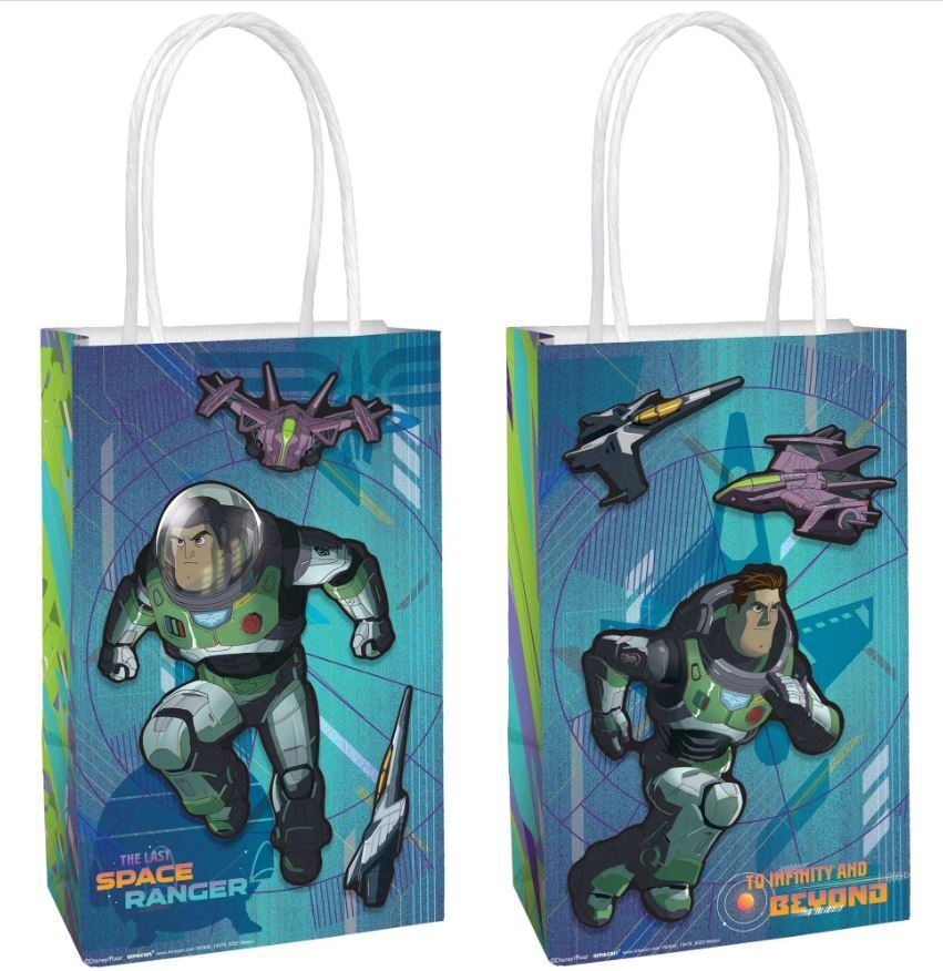 - TOY STORY SPACE RANGER 8 COUNT BAG - This is a bulk set of party favor bags that kids can create and decorate. Each bag is 8.25" tall and 5" wide and features graphics from new movie, Lightyear.