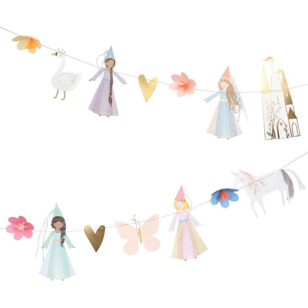 This gorgeous garland will make a princess party look truly amazing. It has 14 pennants, which are foiled and printed on both sides, including princesses, a unicorn, flowers, a butterfly, a magical castle, gold hearts and a swan.