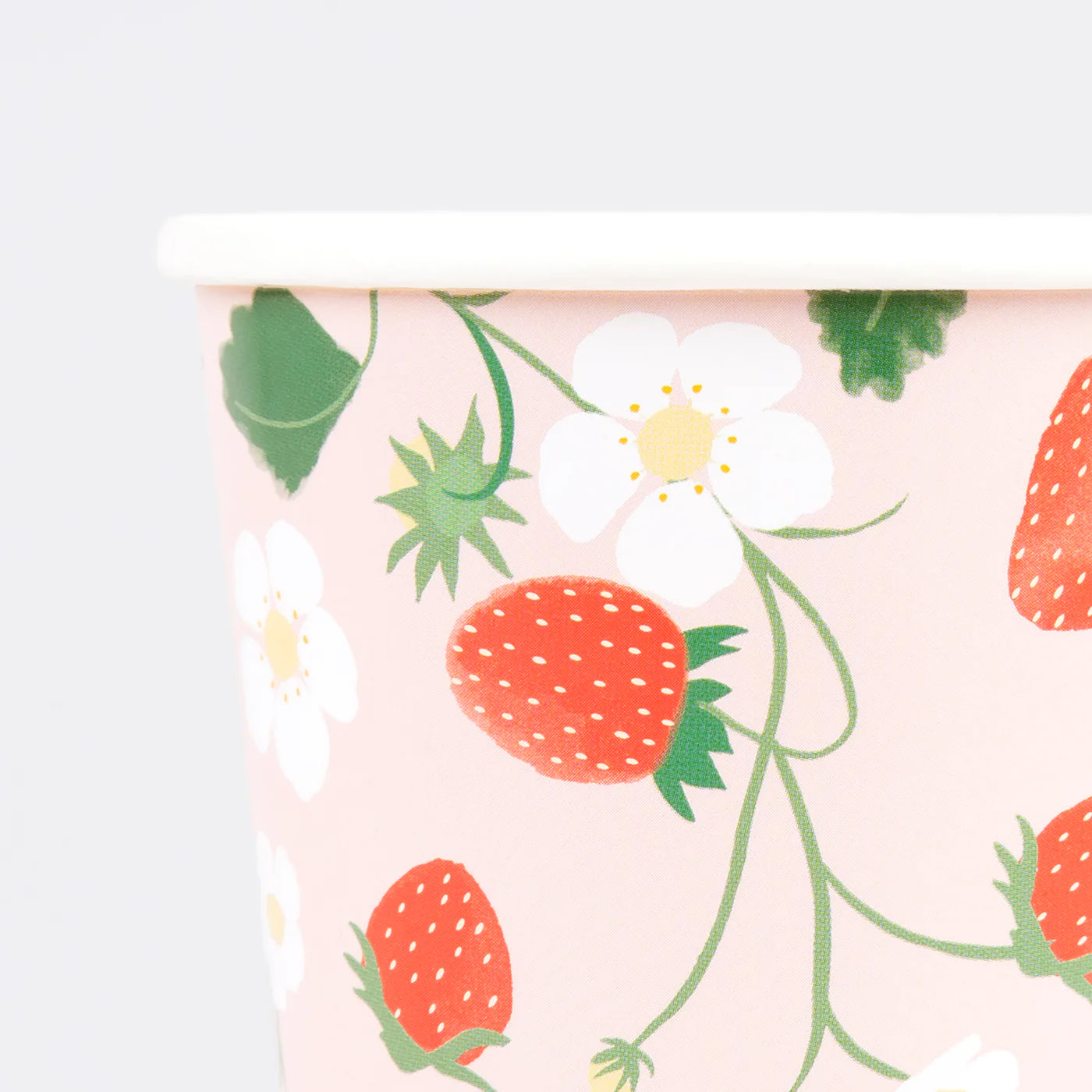 Strawberries are summery and sweet, so it's no wonder this fruity design is having a moment. Bring the beauty of nature to your party by serving cold, or hot, drinks in these premium paper cups. They're ideal for a garden party, picnic or a tennis party.