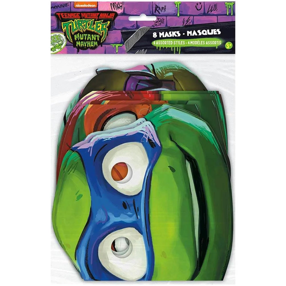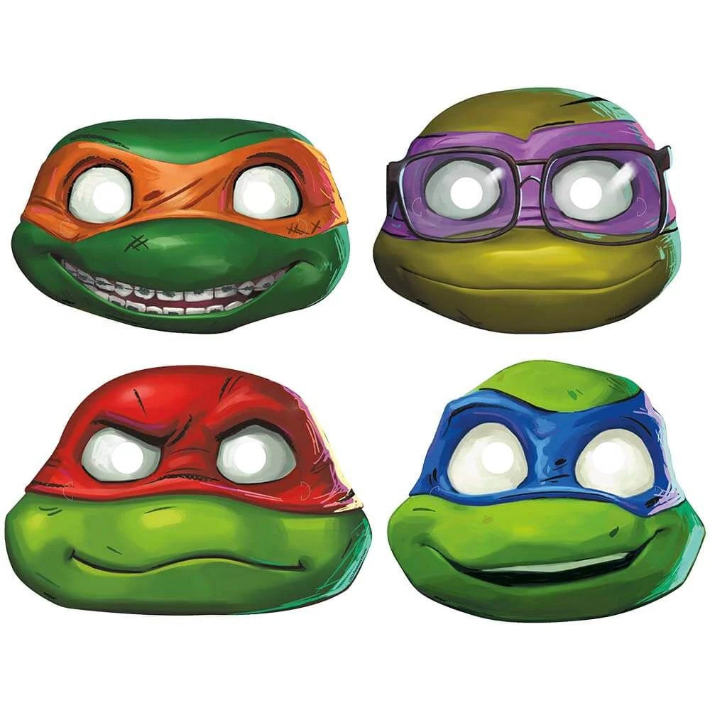 Face masks are the perfect addition to any Teenage Mutant Ninja Turtles party, bringing fun and excitement for everyone who wears one! Kit includes masks of Raphael, Donatello, Michelangelo, and Leonardo and is easily secured around the head by perforated tabs on each side. Great for memorable photos and as favors.