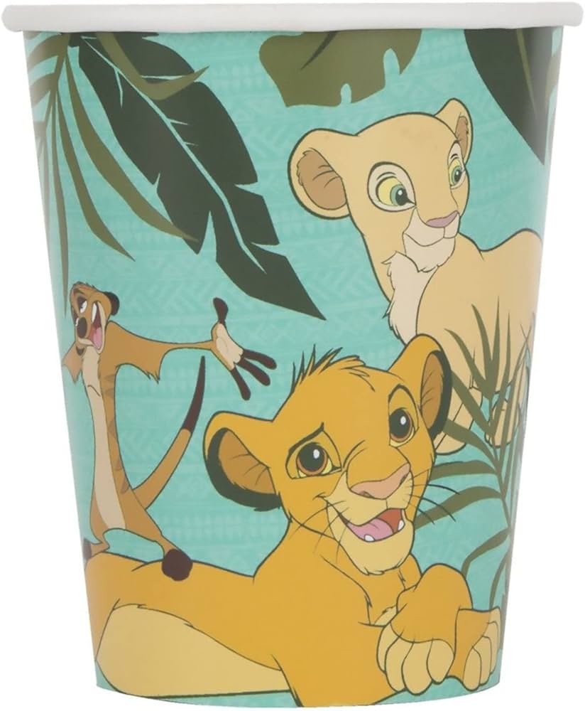 Your Lion King party will not be complete without these party cups! Featuring Nala, Simba and Timon, these cups are the perfect way to sip punch at your birthday bash. They're also durable and disposable to make cleanup after the celebration easy, simply toss and you're done! Paper. (8 pcs. per unit) 3 3/4" 9 oz