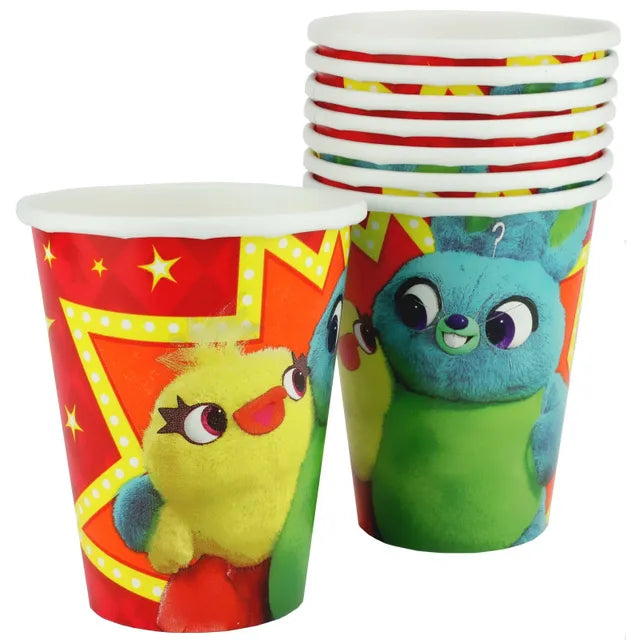 Featuring a wrap-around print of Ducky and Bunny from the Toy Story movie these cups make a fun way to serve drinks at your Toy Story party - pop them on the party table ready for cold drinks or fill the cup with lollies and few Toy Story favours then cover it with cello as a cute Toy Story take-home gift!