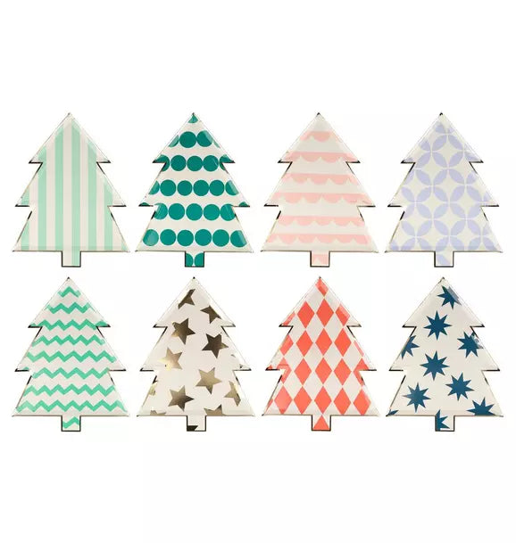 These colorful Christmas tree plates always bring that festive mood to any party. Made from eco-friendly paper with shiny foil detail.